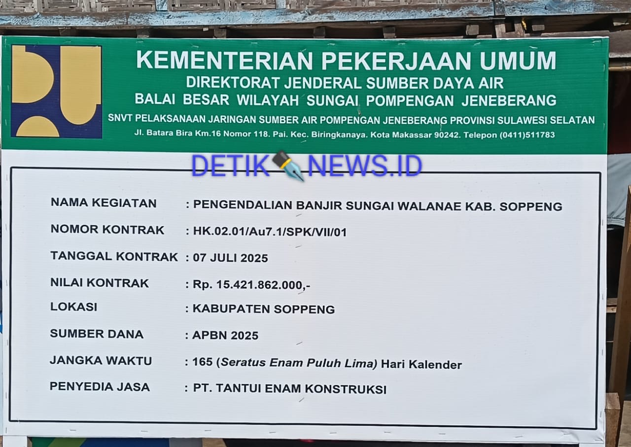 CONTROL24JAM. CO.ID//SOPPENG SULSEL – Proyek dari Kementerian Pekerjaan Umum Direktorat Sumber Daya Air Balai Besar Wilayah Sungai Pompengan Jeneberang, dan SNVT Pelaksanaan Jaringan Sumber Air Pompengan Jeneberang Provinsi Sulawesi – Selatan.